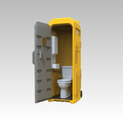 Les cabines de douche chantier  sont des douches transportables et autonomes. Prévus pour les manifestations ou les chantiers de courte durée, ils peuvent également servir dans des endroits isolés démunis de réseau électrique et de sanitaire. Cabine de Douche Rotomoulé PVC Extra Robuste. Peut être déplacé comme vous les souhaitez avec ses 2 roues à l’intérieur.